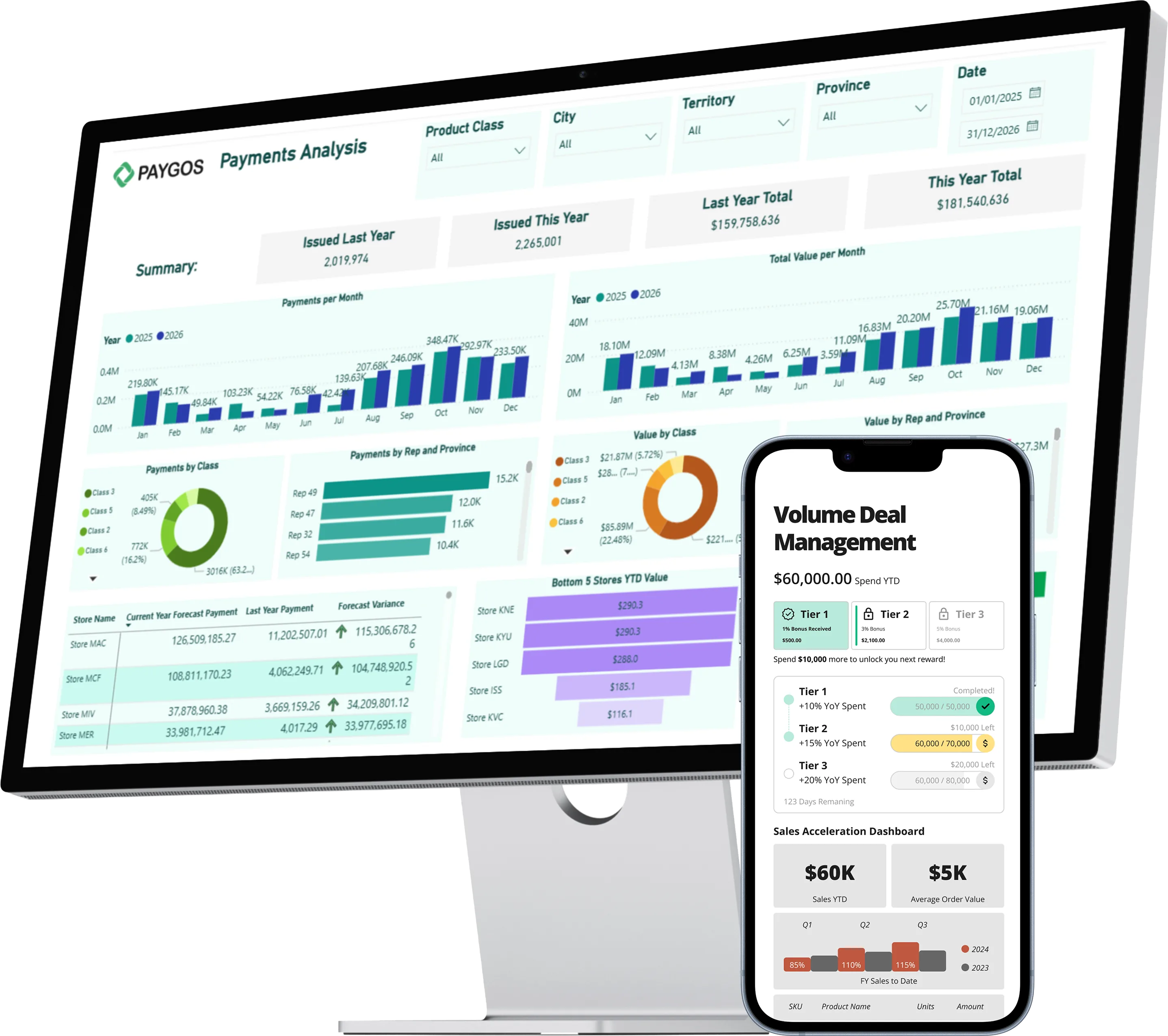 Managing rebate programs and volume incentive deals should be exciting, not exhausting! Paygos takes the hassle out of managing rebate and Volume Incentive Programs by automating everything—from agreement setup to real-time performance tracking.